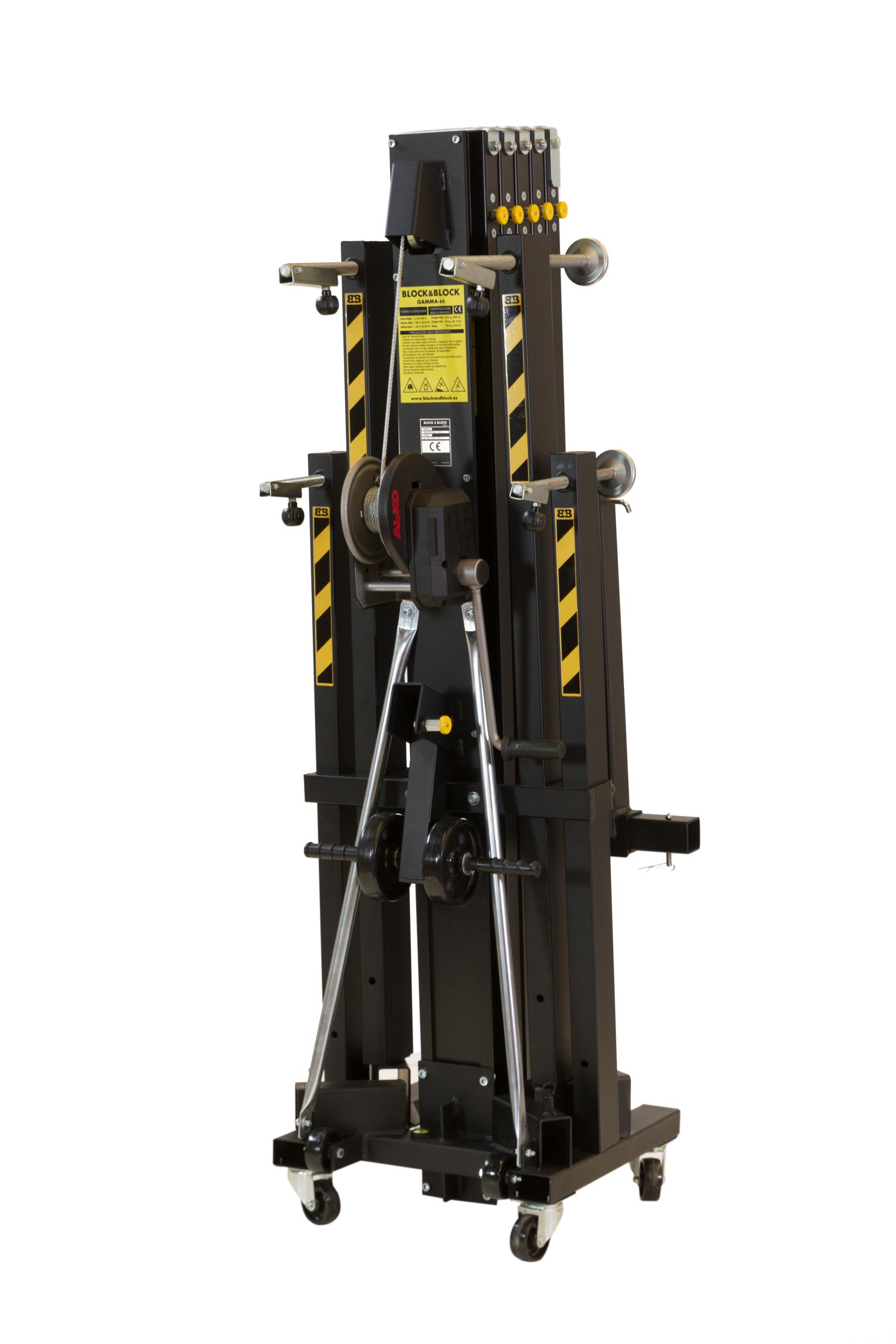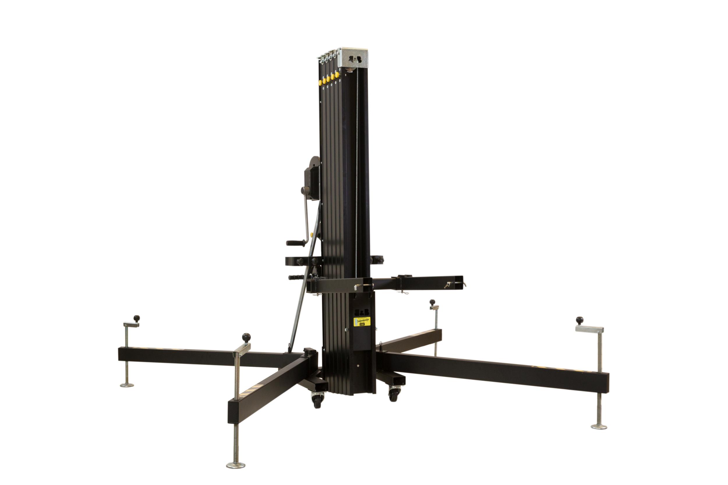 Raggiunge i 7,60 metri di altezza mediante 5 tratti telescopici in alluminio, che garantiscono un carico massimo fino a 270 kg. È dotato di innesti di sicurezza per bloccare i diversi tratti a diverse altezze. Le aste regolabili e i perni degli stessi garantiscono un buon ancoraggio e una perfetta stabilità.